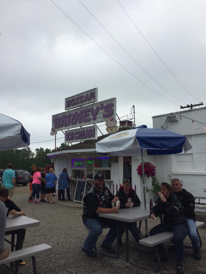 I think we stayed here about 45 minutes. The sky was getting cloudier and darker from the north. Luckily, right across the street was Boxcar Barney's Ice Cream, so we mounted our horses and went over there.