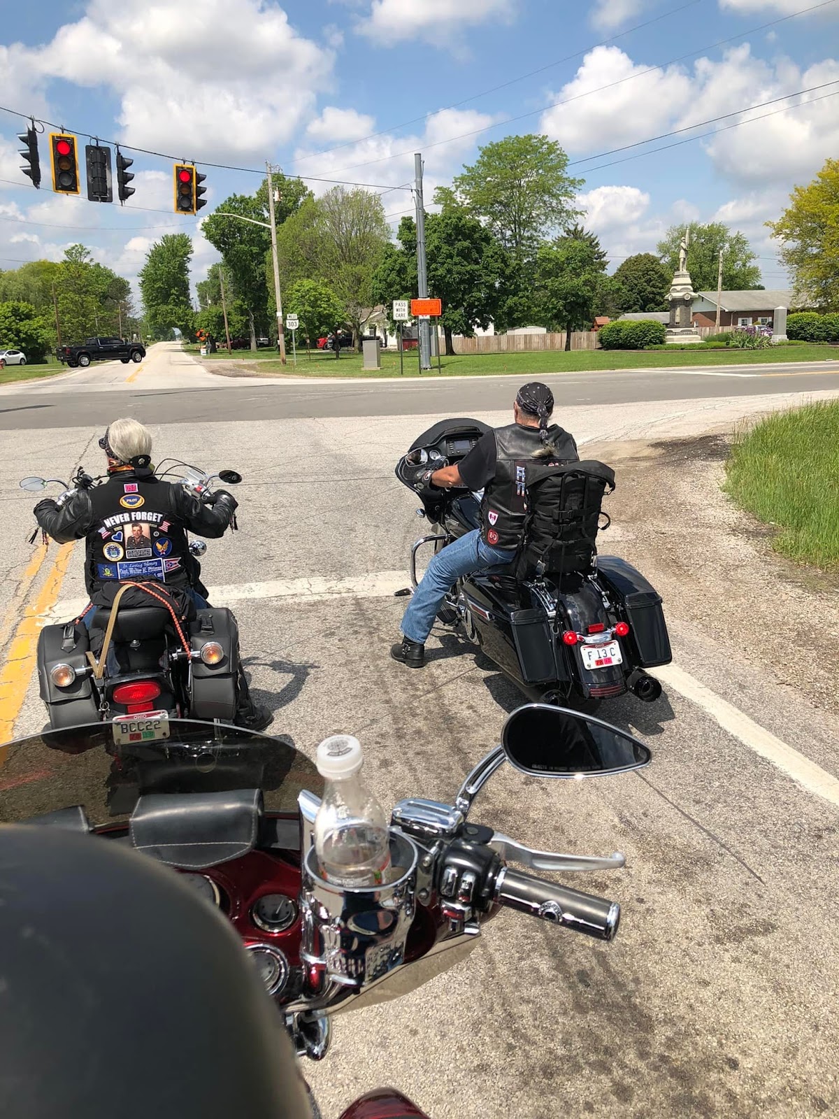 We took a break along the way at a Sheetz store, and when we pulled in had noticed some thug-looking bikers holding up the brick wall of the store. Well, we parked, and nope, not thugs, just some of the cool dudes of the V-Twins Motorcycle Club from back home! We were all heading to the Sandusky, Ohio area. They were going to Ohio Bike Week events for the day, and we were heading to other parts of the area. (When I scheduled the ride in January, I didn't know it was bike week!).